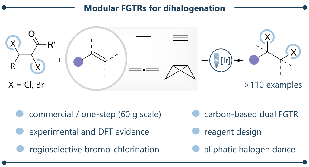 Visible-Light-Mediated Vicinal Dihalogenation of Unsaturated C−C Bonds Using Dual-Functional Group Transfer Reagents